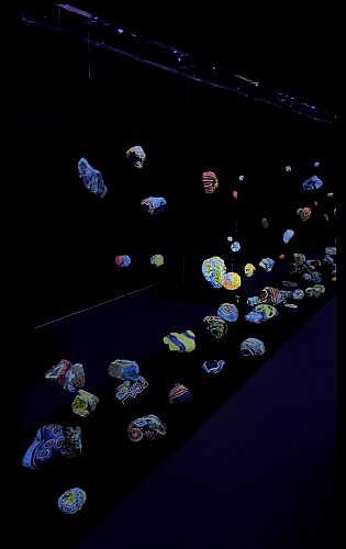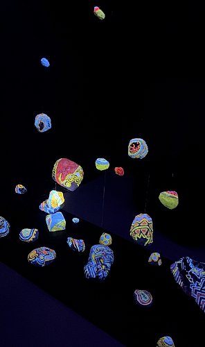 Вдохновленные современными технологиями, художники выставки использовали специальные материалы и краски, которые позволяют достичь такого эффекта. При обычном свете зритель видит яркие и насыщенные цвета, но стоит лишь включить ультрафиолетовую лампу, как перед ним открывается совершенно новая реальность. Это создает ощущение диалога между двумя мирами — видимым и невидимым.