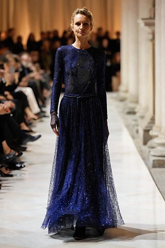 Финальным аккордом вечера стало появление модели в темно-синем платье с вышитым портретом самого Джорджо Армани. Этот образ поставил точку в одной эпохе и открыл новую, доказав, что наследие Маэстро — его безупречный вкус, вера в элегантную и уверенную женщину и его вневременной стиль — останется жить в каждой вещи, носящей его имя.
