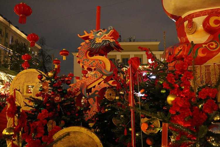 По китайским обычаям, в канун Нового года дома украшают красными фонариками. Их можно заметить и на Тверской площади. Здесь можно сделать прекрасные фотографии в китайском стиле и попробовать традиционные китайские блюда.