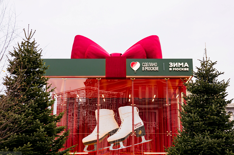 Павильон на Кузнецком Мосту объединил представителей модной индустрии столицы. Его оформили в виде прозрачной подарочной коробки с коньками внутри.
