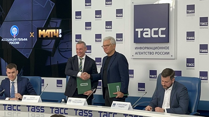 В ТАСС 30 марта прошла пресс-конференция, посвященная анонсированию нового сезона и началу сотрудничества Ассоциации гольфа России (АГР) и букмекерской компании «Лига ставок». Спикерами встречи стали генеральный продюсер телеканала «Матч ТВ» Александр Тащин, президент ассоциации гольфа России Виктор Христенко и президент российской букмекерской компании «Лига Ставок» Юрий Красовский.