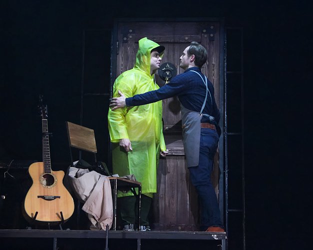 Постановка отчаянно пытается балансировать между камерной психологической драмой и непосредственно самим мюзиклом. Задача сама по себе не из легких, поэтому иногда ход постановки теряет динамику, становится рваным и куцым. Длинные, полные напряжения диалоги неожиданно переходят в песни, которые, по идее, должны дополнять слова героев, однако смотрится это не всегда уместно. В итоге мы получаем неожиданное переключение с простых, но по-своему красивых музыкальных номеров на длинные монологи.